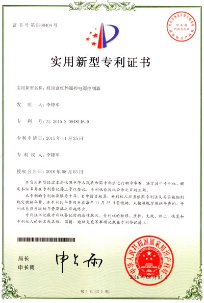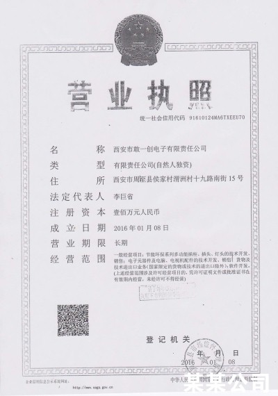 营业执照 本公司一直坚持以科技为先导,产品精益求精,不断满足用户需求,用满意的产品和最好的服务全力达到用户的需求。公司生产的节能插座等产品近年来受到了各级领导以及广大客户的肯定,在此,对多年来一贯支持我们的各级领导、广大客户表示衷心的感谢!我们将以更优质的产品和服务满足更多客户的需求!